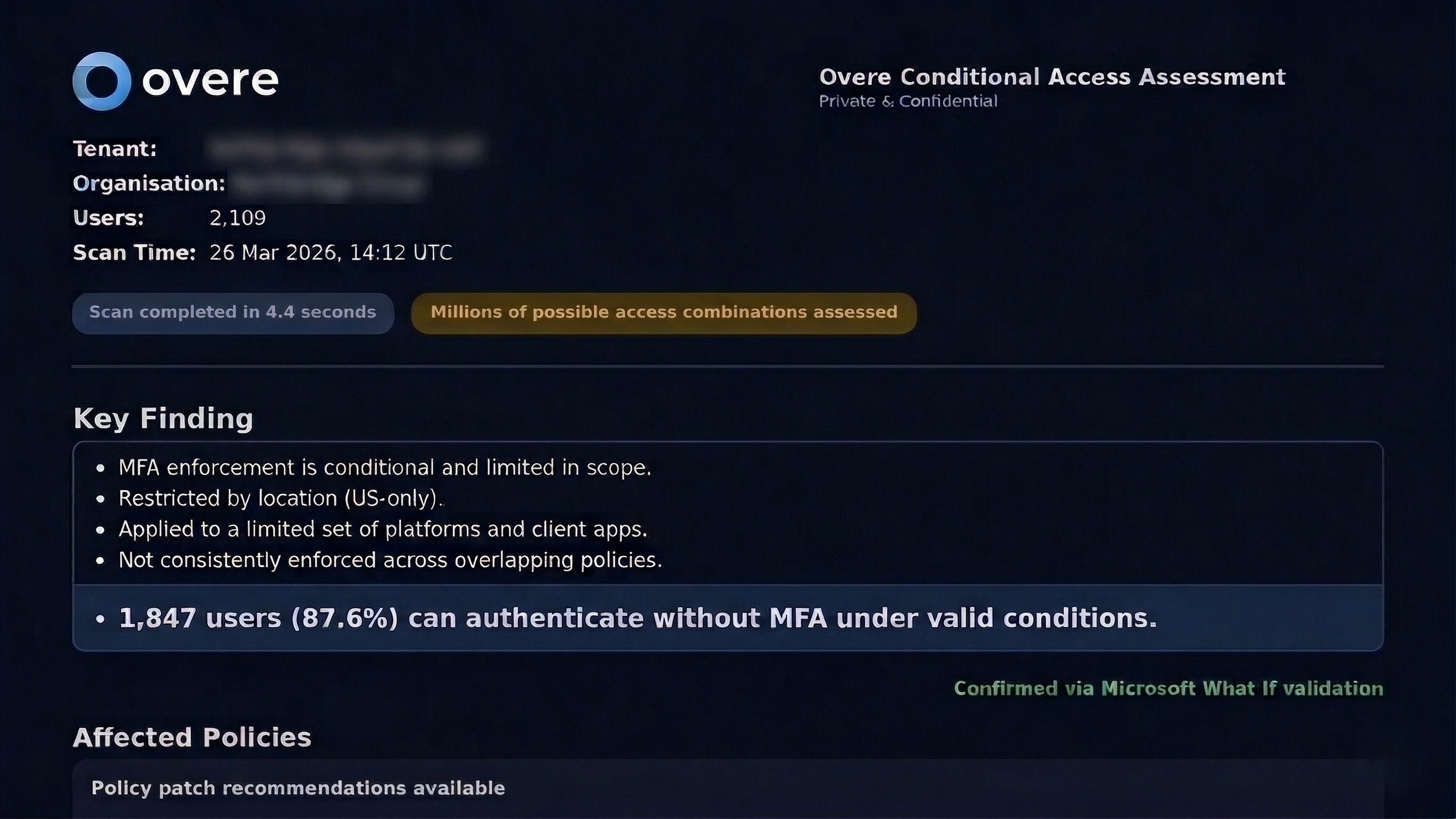 And interestingly, the outcome isn’t always “you’ve got a problem”. In some environments, everything lines up and controls are being enforced exactly as expected. That’s just as valuable. It gives you confidence that what you’ve built is actually holding up in practice, not just in theory. This is exactly what we see when Overe is fully utilised by our customers.